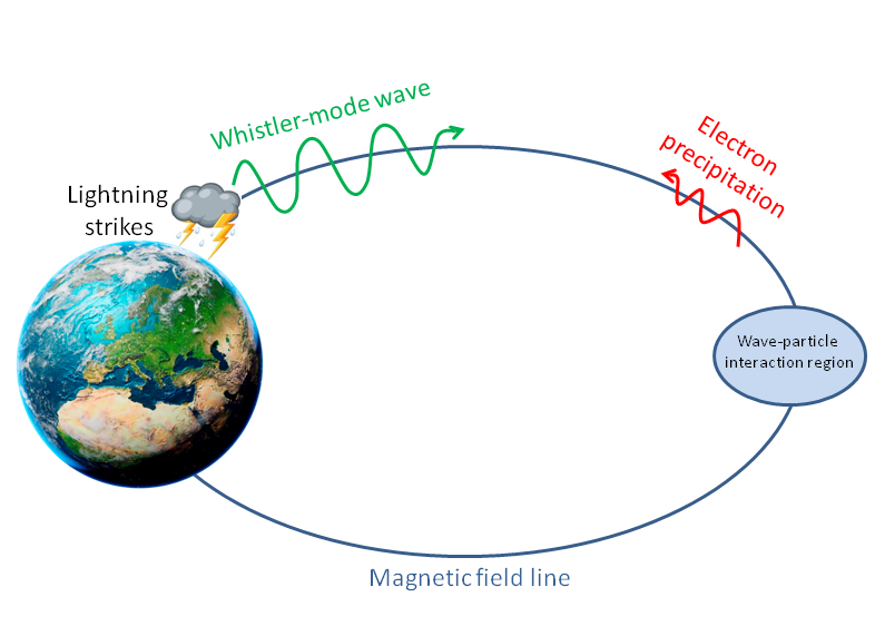 Another phenomenon that contributes to the production of radio interference in the VLF band is electron energy precipitation (EEP). This is a phenomenon that occurs when electrons coming from the solar wind and trapped in the Van Allen belts fall into the Ionosphere and collide with the ions. This occurs as a result of the propagation of VLF radio waves through the Earth's magnetic field lines. Lightning often contributes to this phenomenon (LEP) as the electrical discharge of a lightning produces an electromagnetic pulse (EMP) which strikes the electrons in the Van Allen radiation belt causing them to precipitate.